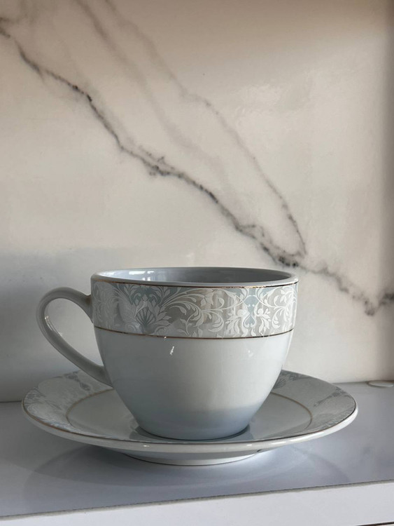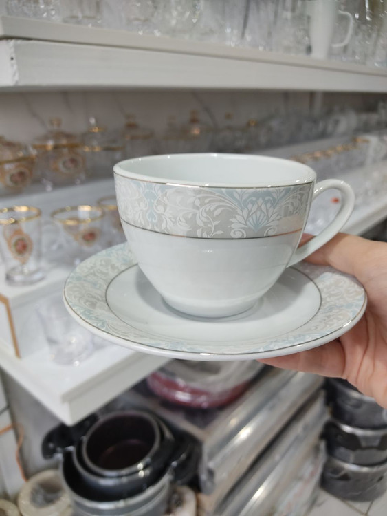 سرویس چینی 12 پارچهی فنجان نعلبکی مونالیزا برند مقصود سفید فیروزه آبی پذیرایی