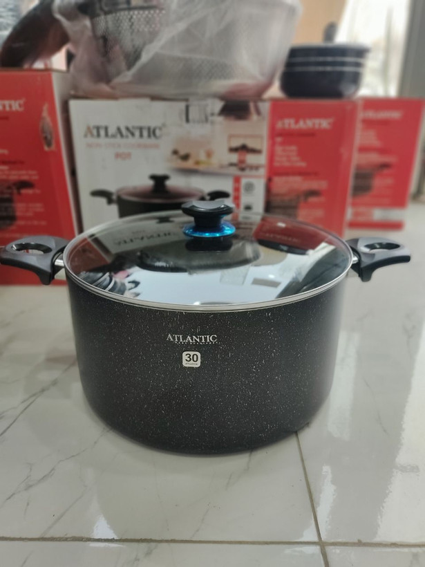 قابلمه دودسته 30 آتلانتیک مدل POT-2030 یکی از بهترین و باکیفیت ترین محصولات شرکت آتلانتیک می باشد از دیگر مزیت های این محصول میتوان: 1-در تولید این محصول کلیه قوانین و استانداردهای پوشش و موارد بهداشتی و نکات فنی تولید رعایت شده است. 2-این ظروف دارای پوشش داخلی گرانیت(به منظور صرفه جویی در مصرف روغن و مقاوم در برابر پخت و پز های طولانی)و پوشش بیرونی همسان(گرانیت)با داخل می باشد که به هیچ عنوان پس از سرریز شدن غذا و یا دود کردن شعله و همچنین درجه حرارت های بالا آسیب نمی بیند. 3-مواد اولیه ساخت این محصول از مرغوب ترین مواد شامل آلمینیوم خالص ضخیم و دسته و قپه باکالیت و گارد و بست و پیچ استیل و درب شیشه ای با استیل نگیر و بسته بندی مناسب و پوشش نچسب گرانیتی در طرح ها ورنگها و سایزهای متنوع می باشد.