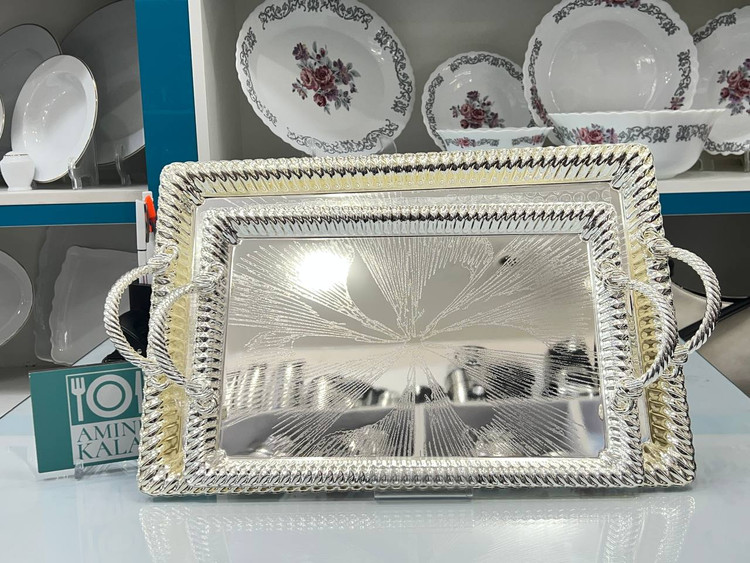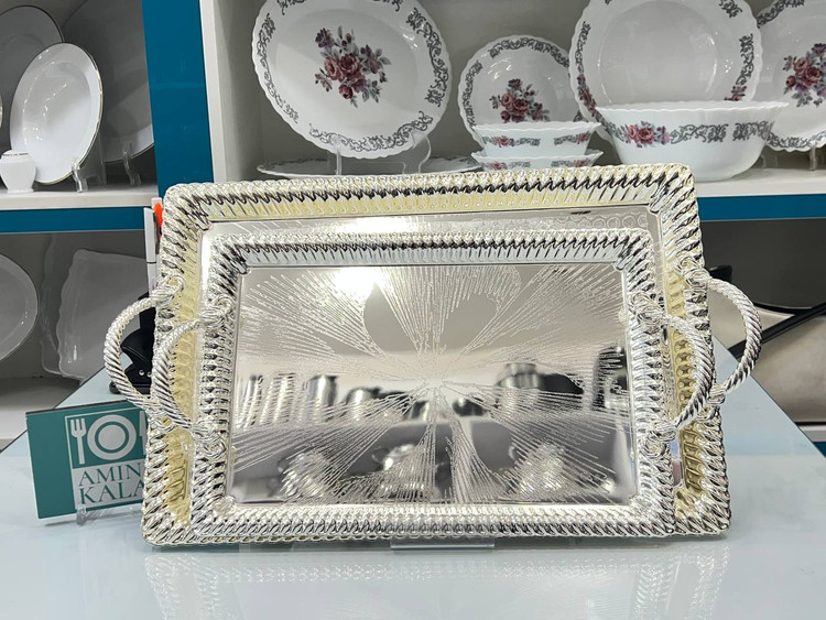 سینی دو عددی اماراتی مخصوص پذیرایی نقرهای پرطرفدار از برند Azhy با قیمت مناسب و ارسال رایگان