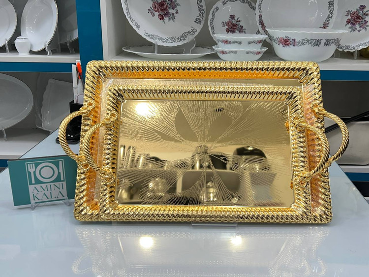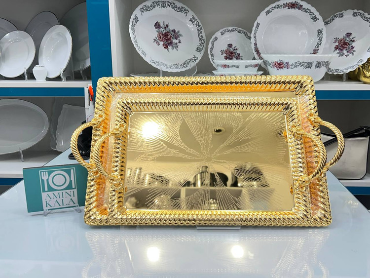 سینی دو عددی مخصوص پذیرایی طلایی از برند Azhy با کیفیت همراه با قیمت مناسب و ارسال رایگان