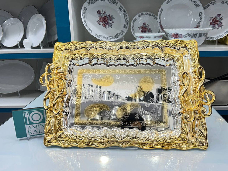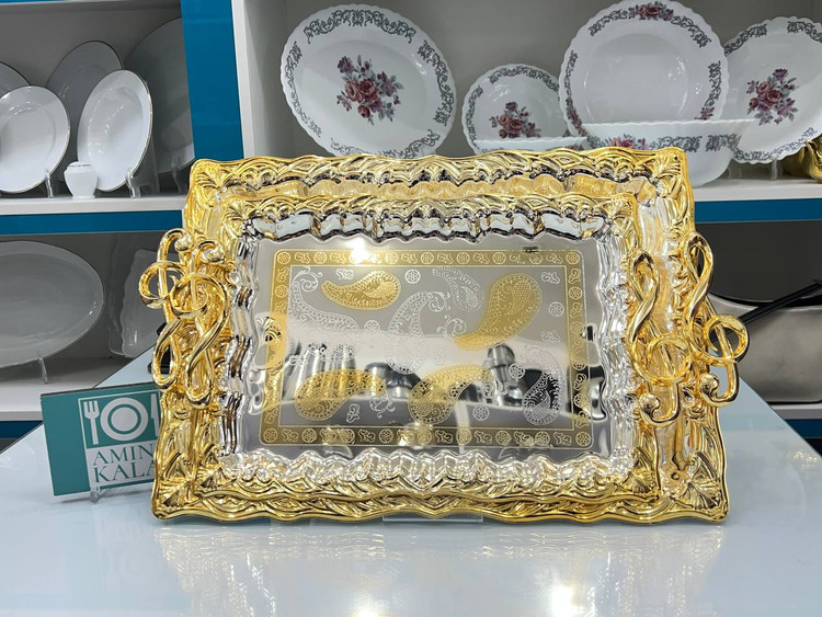 سینی پذیرایی اماراتی دو عددی طلایی نقرهای کد GS-594 از برند معروف zew home با ارسال رایگان و قیمت مناسب