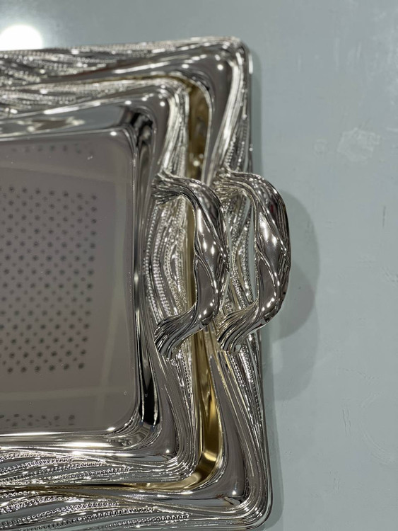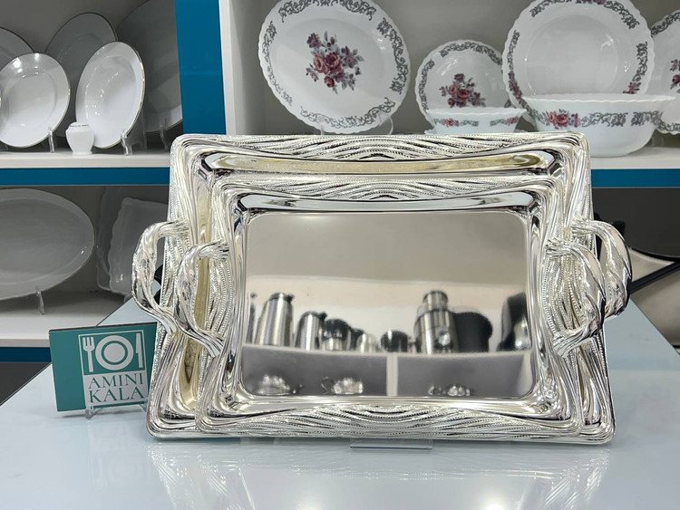 سینی پذیرایی اماراتی دو عددی کد S-711 از برند پرطرفدار Azhy در رنگ نقرهای با ارسال رایگان و قیمت مناسب