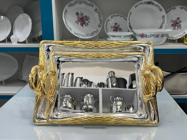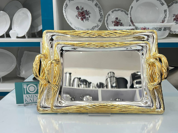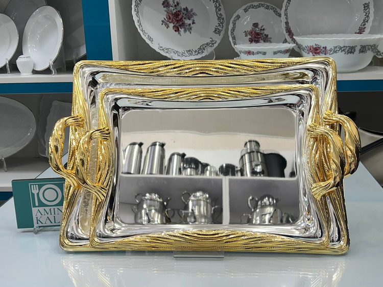 سینی پذیرایی اماراتی دو عددی کد SG-711 از برند پرطرفدار Azhy در رنگ طلایی نقرهای با ارسال رایگان و قیمت مناسب