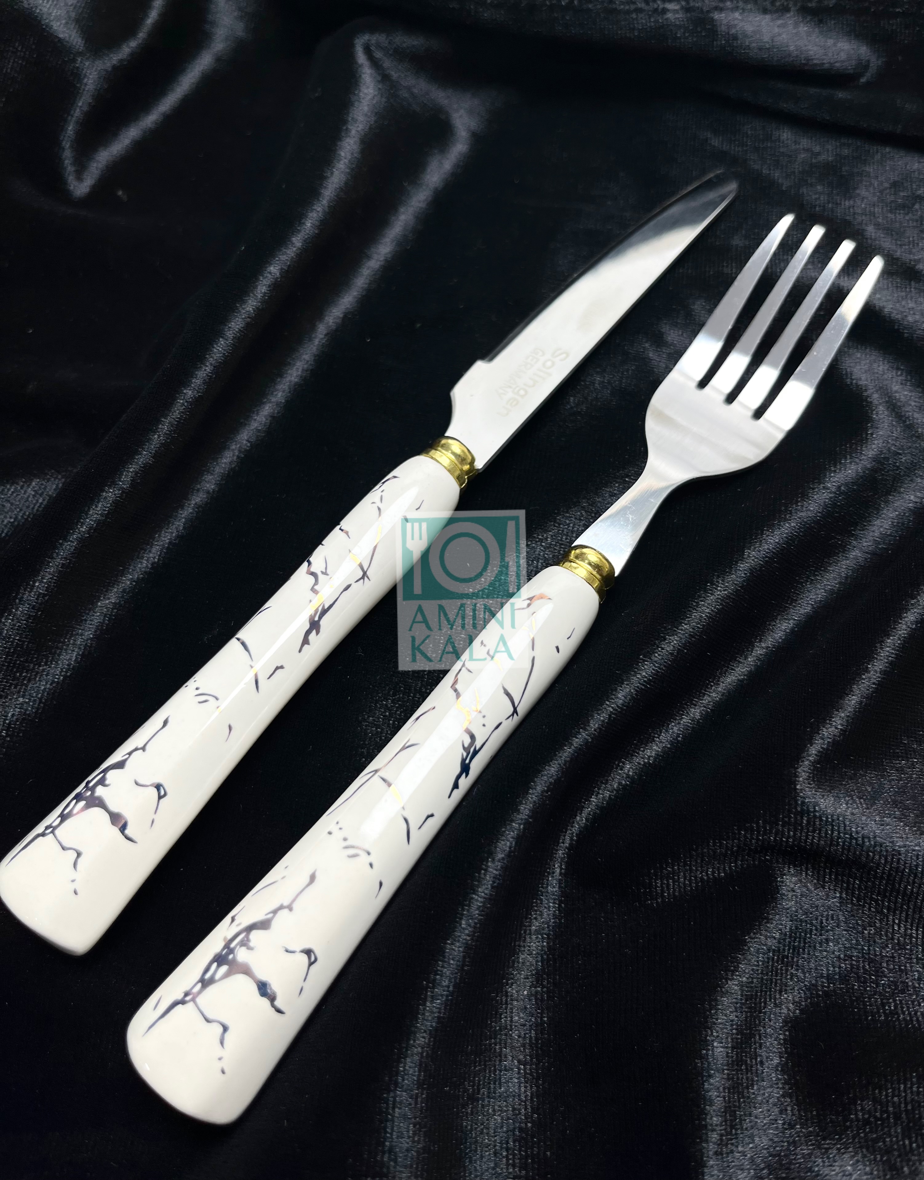 کارد و چنگال میوهخوری سولینگن با دسته سرامیکی