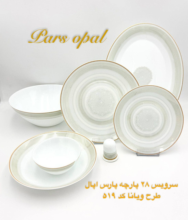 سرویس غذاخوری ۲۸ پارچه برند پارس اپال طرح ویانا انتخابی ایدهآل برای خانوادههای ۶ نفره است. این ست کاربردی شامل: