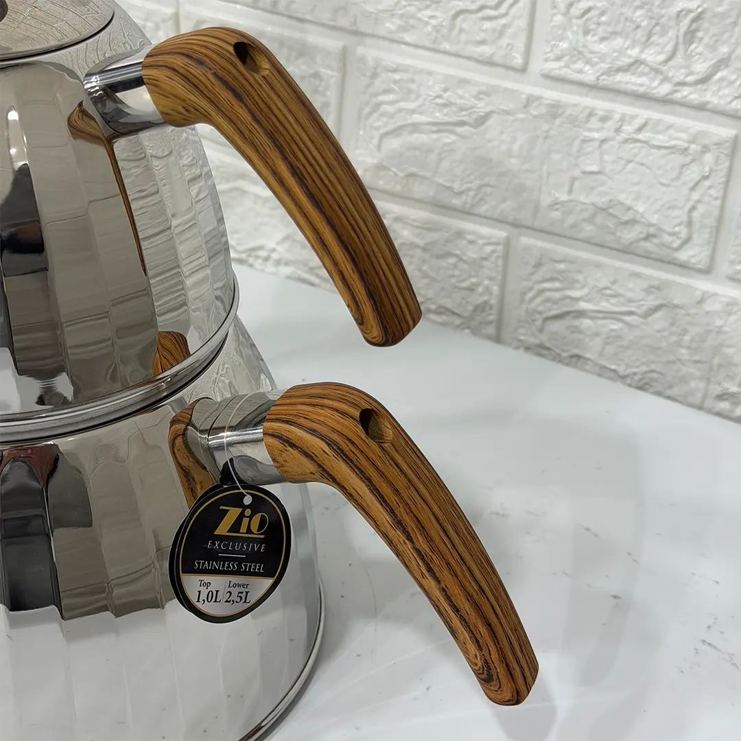 کتری و قوری زیو مدل ۱۸۵۶ | استیل باکیفیت با دسته نسوز